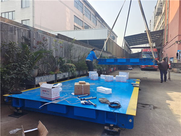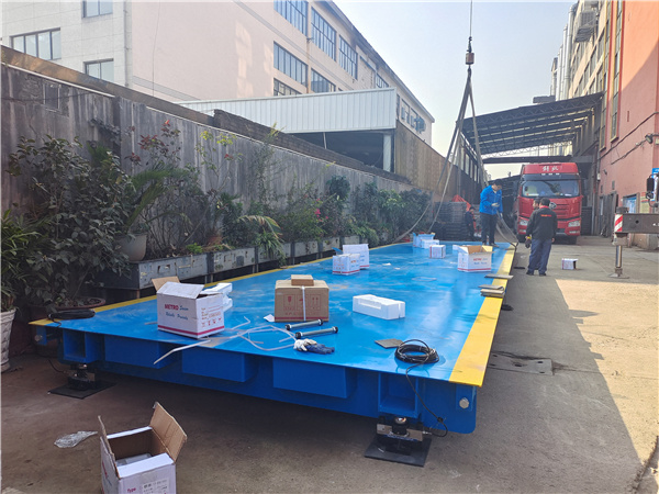 健身器材工廠(chǎng)為方便過(guò)進(jìn)出貨物過(guò)磅,省去跟車(chē)去外面過(guò)磅的時(shí)間和功夫,選擇自己安裝一臺(tái)廠(chǎng)區(qū)內(nèi)自備用磅。